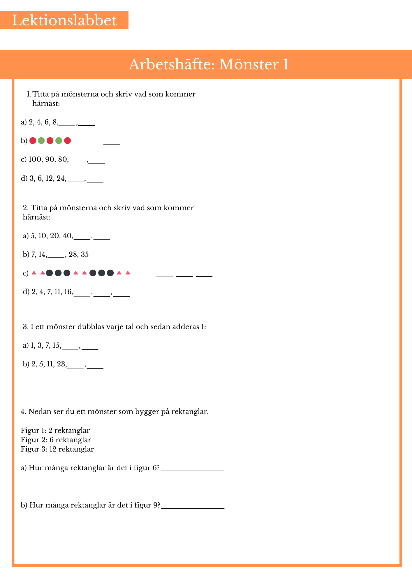 Öva på mönster. Passar bäst årskurs 6.