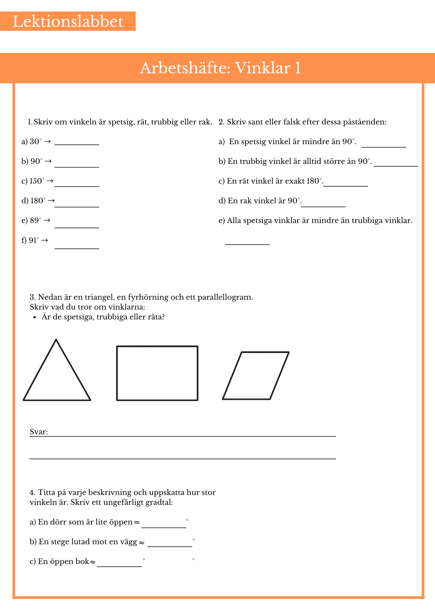 Öva på vinklar. Passar bäst årskurs 4 och 5.