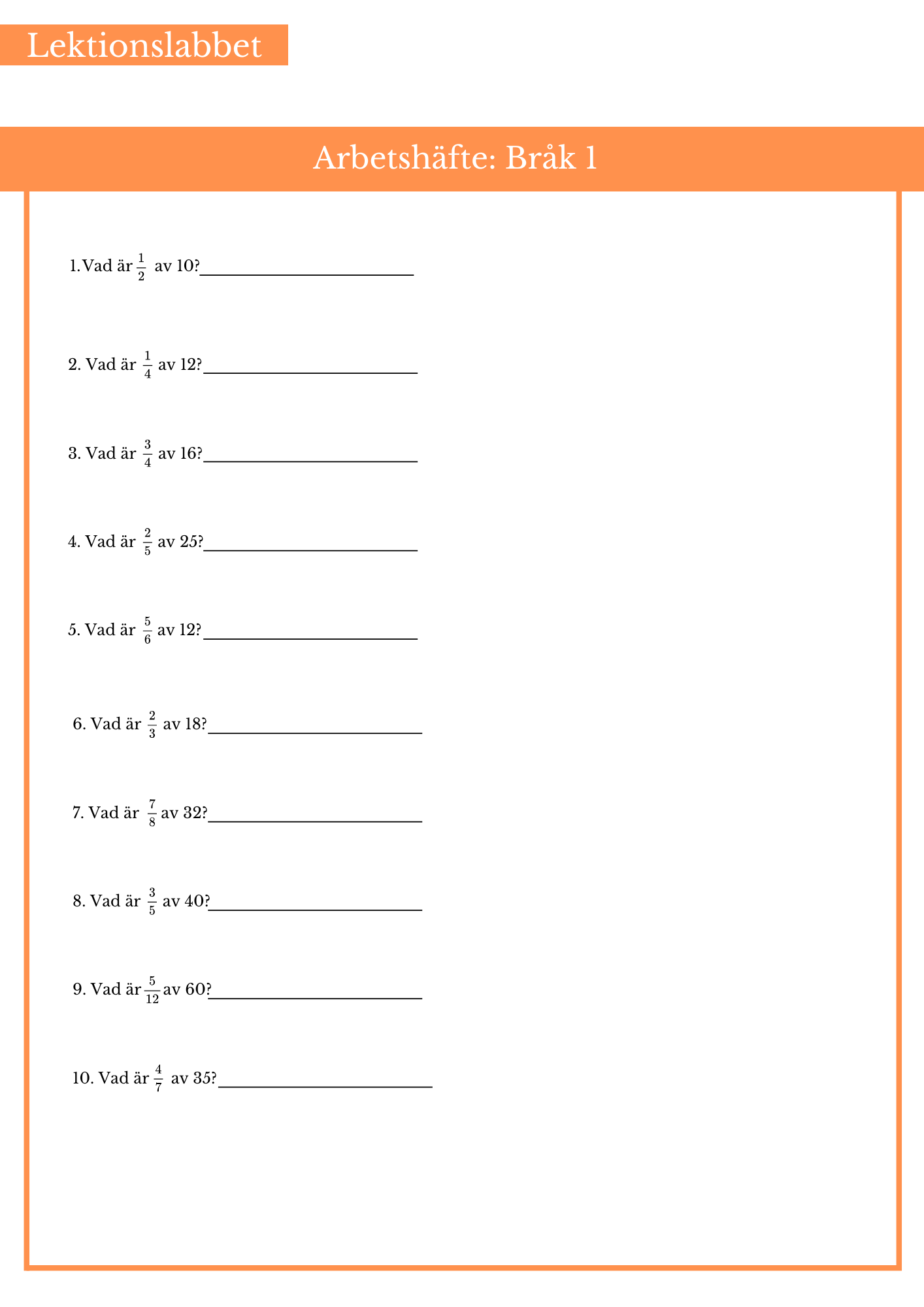 Öva på att räkna ut mer än en bråkdel av ett tal. Passar bäst årskurs 4, 5 och 6.