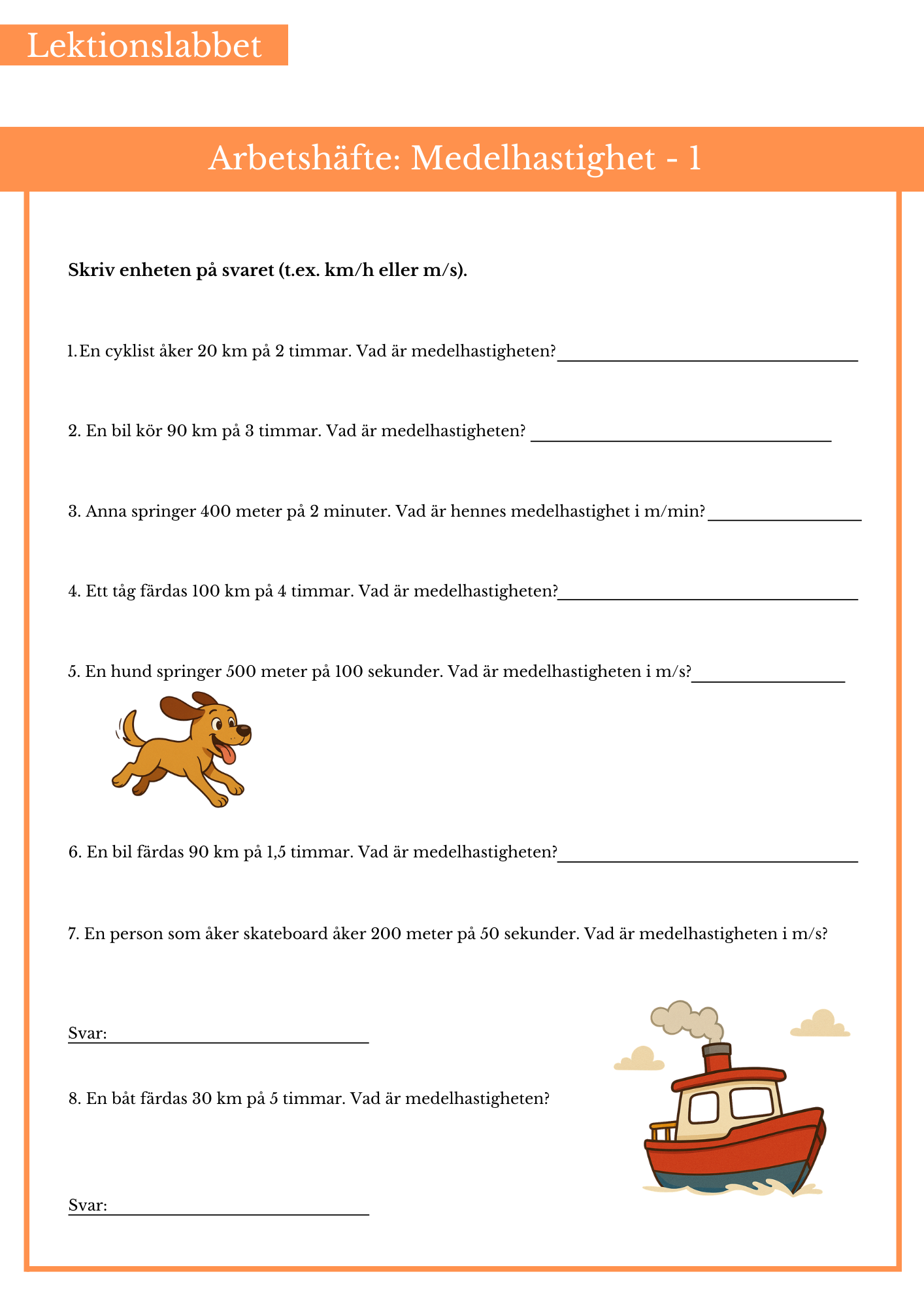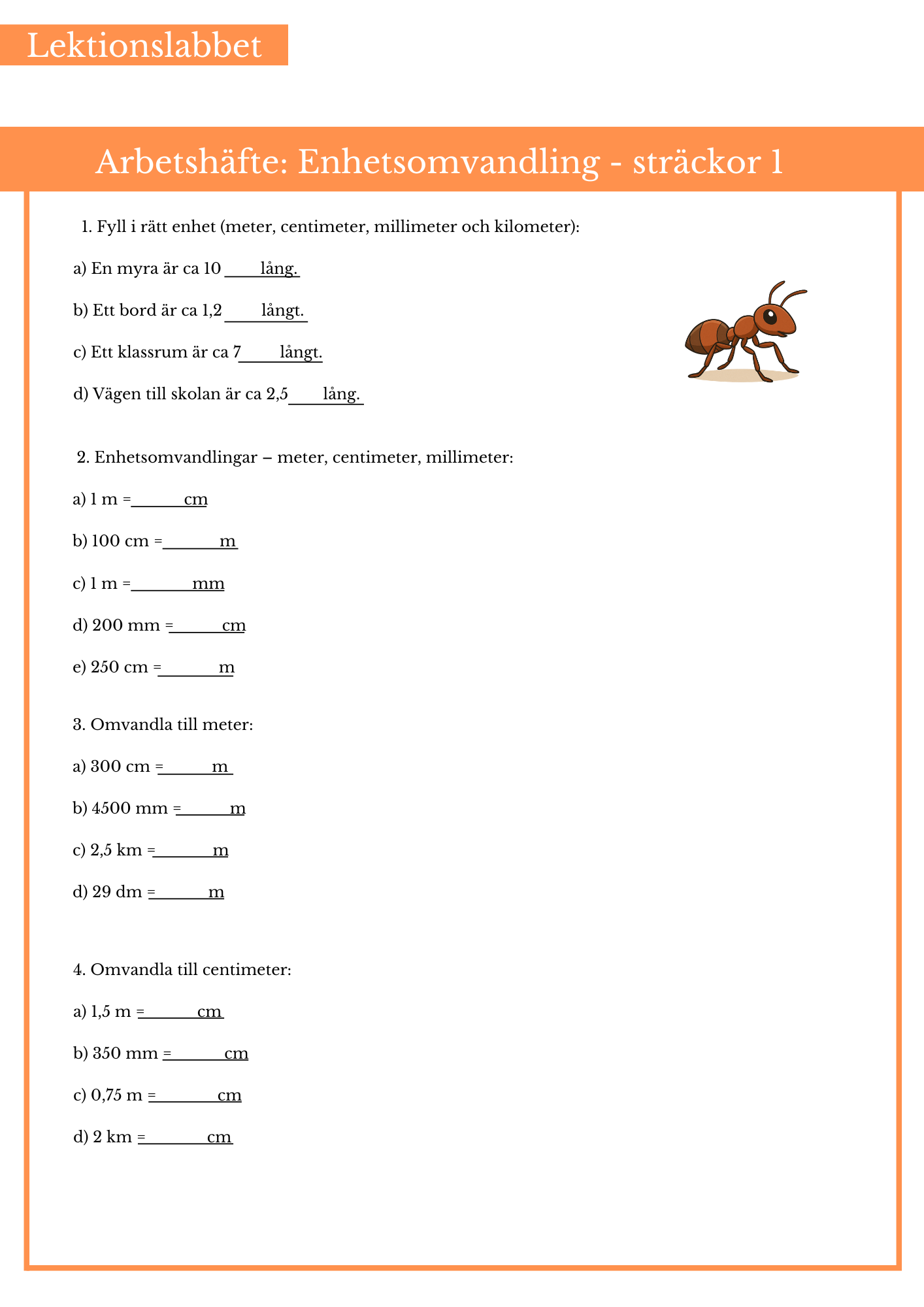 Öva på enhetsomvandling inom sträckor. Passar bäst årskurs 4, 5 och 6.