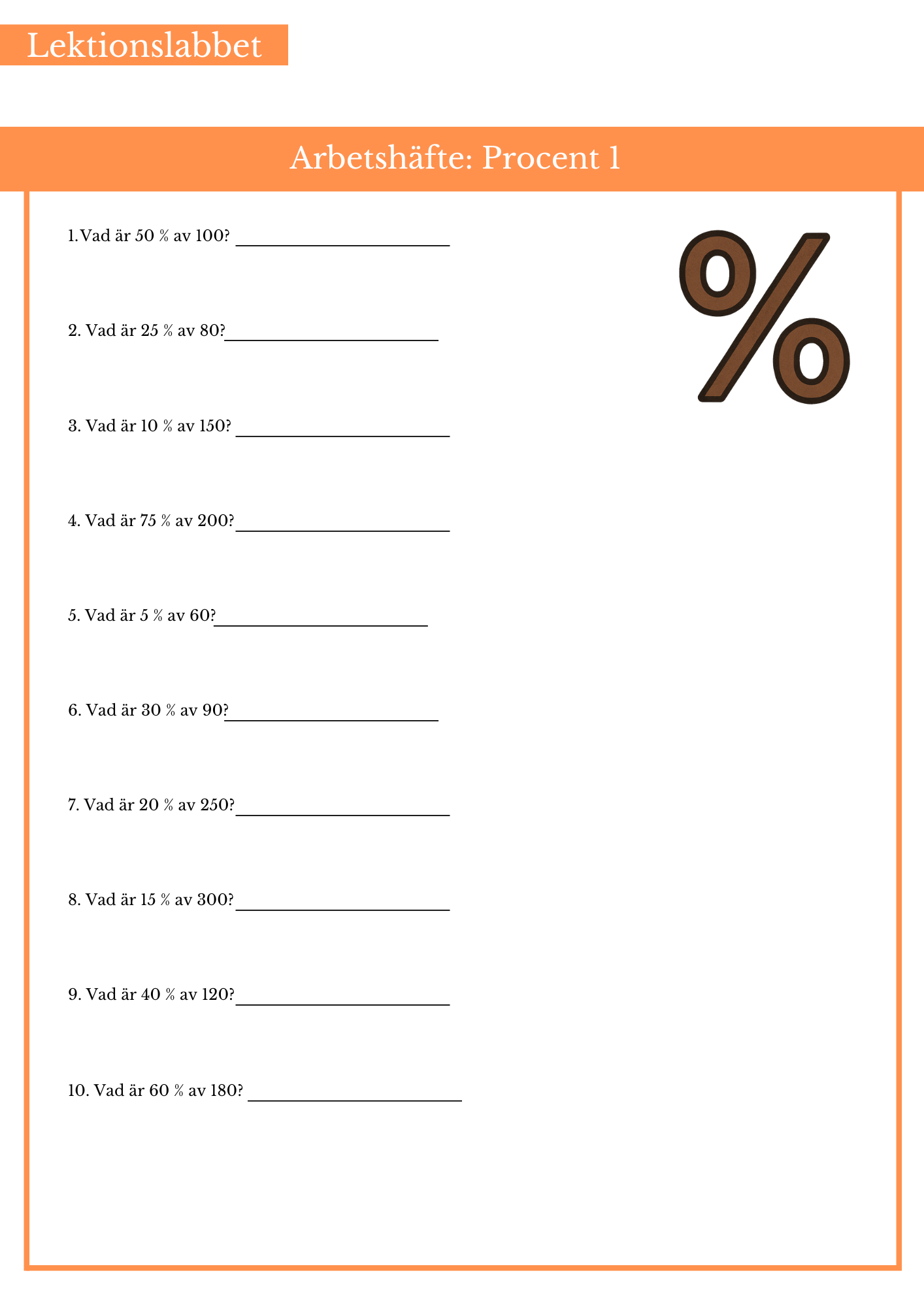 Öva på procent. Passar bäst årskurs 4, 5 och 6.