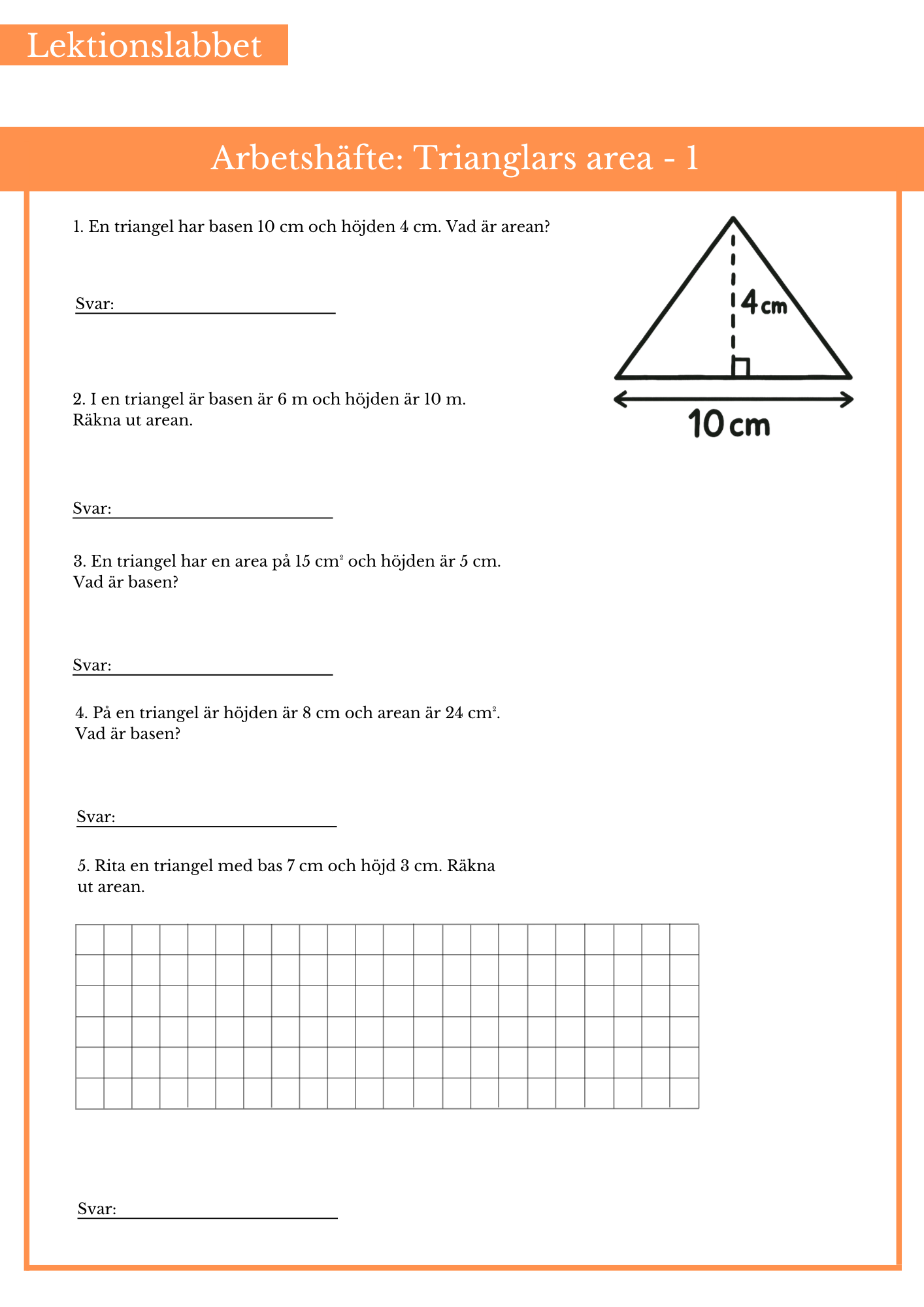 Öva på trianglars area inom sträckor. Passar bäst årskurs 5 och 6.
