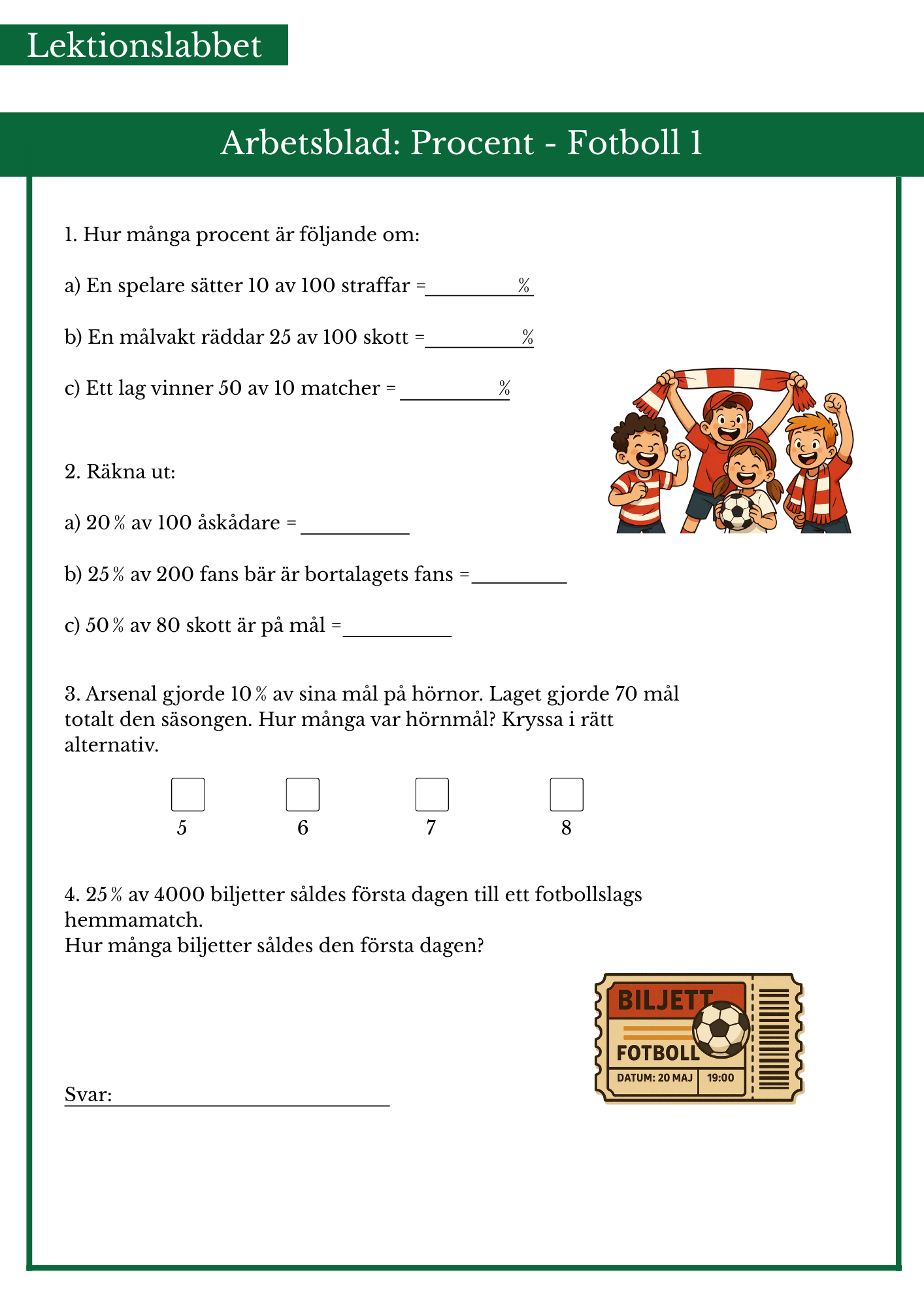 Räkna enbart procent med fotbollstema.