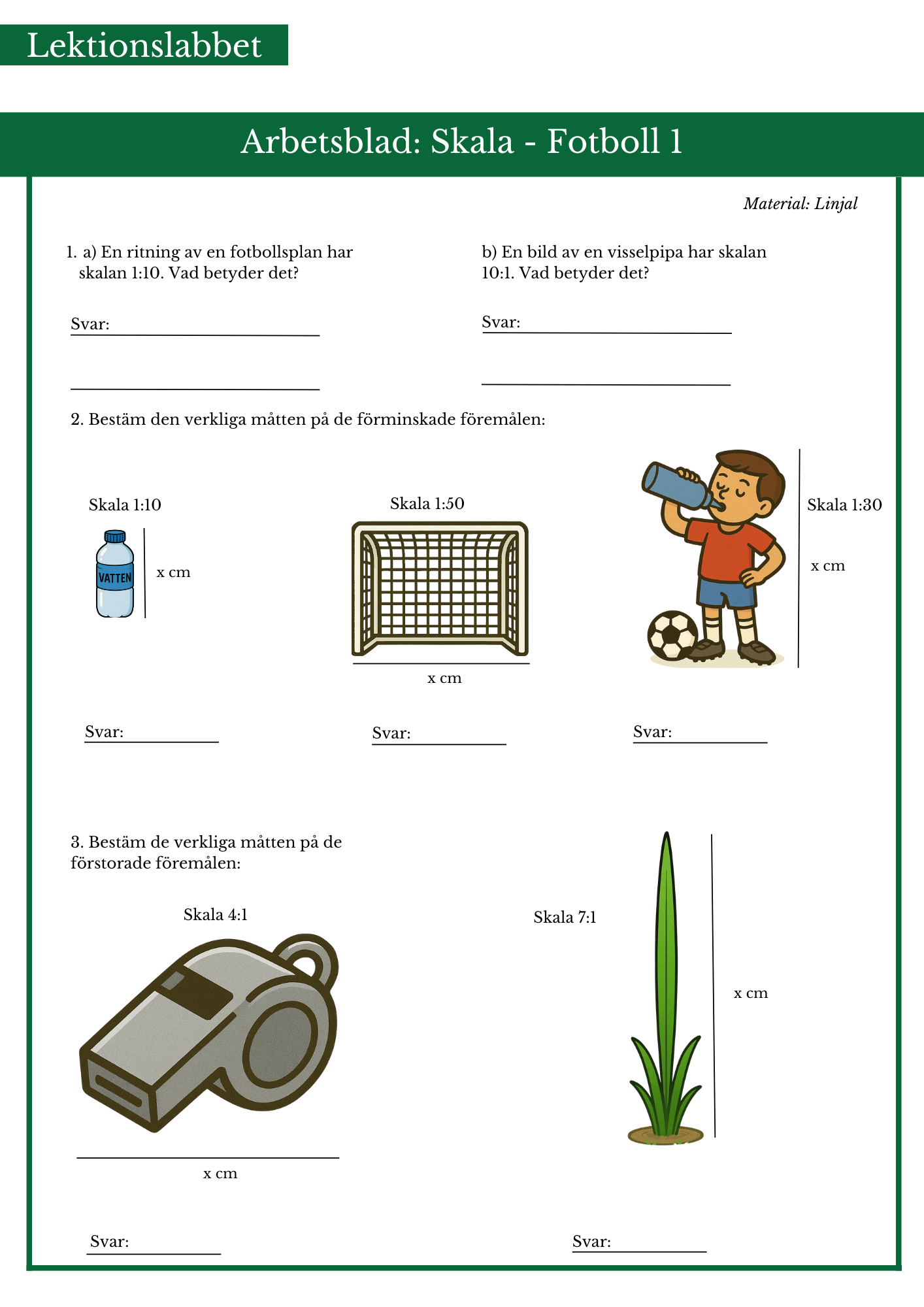 Förminskning och förstoring med fotbollstema. Passar årskurs 5.