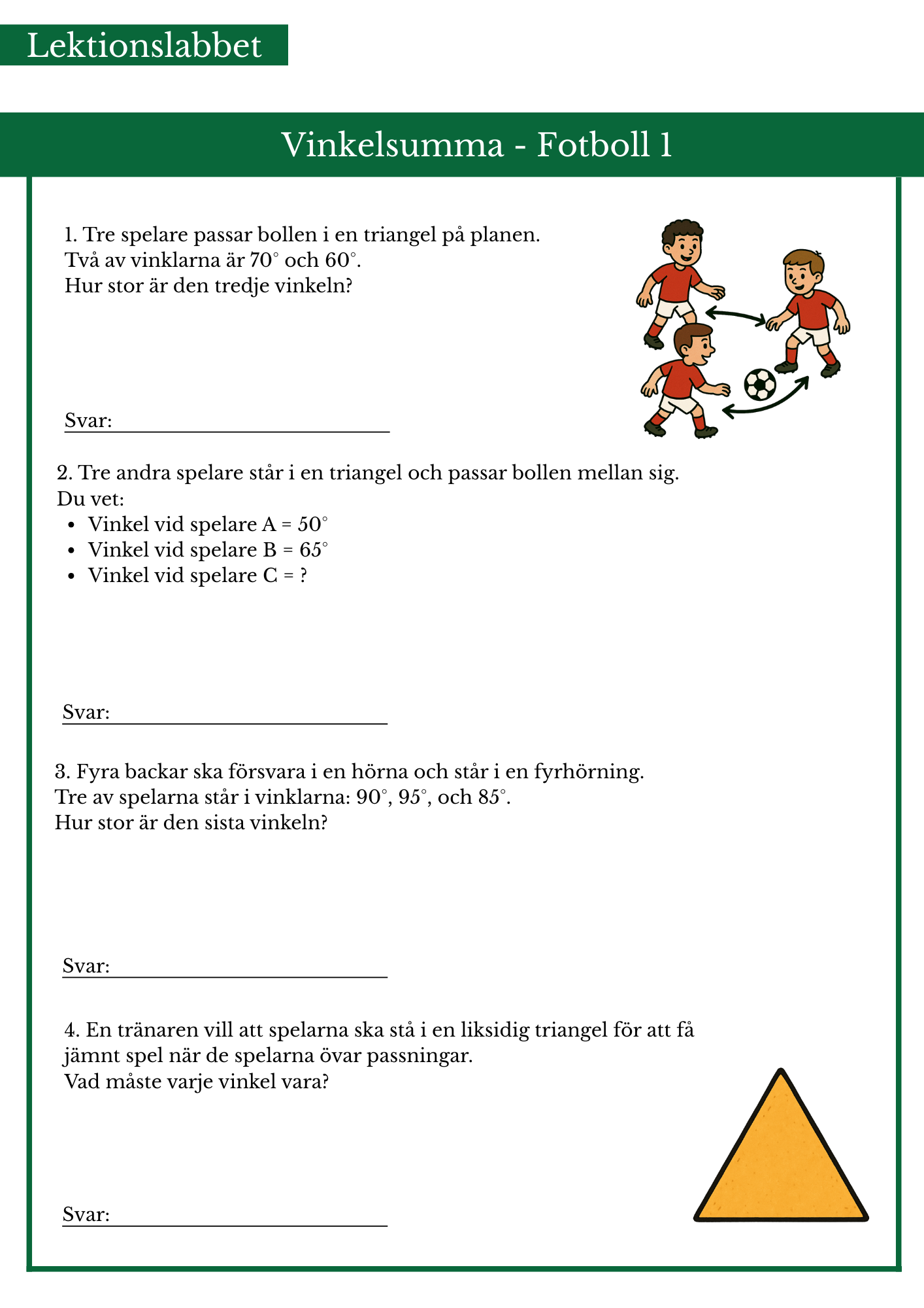 Räkna uppgifter med hjälp av vinkelsumma med fotbollstema.