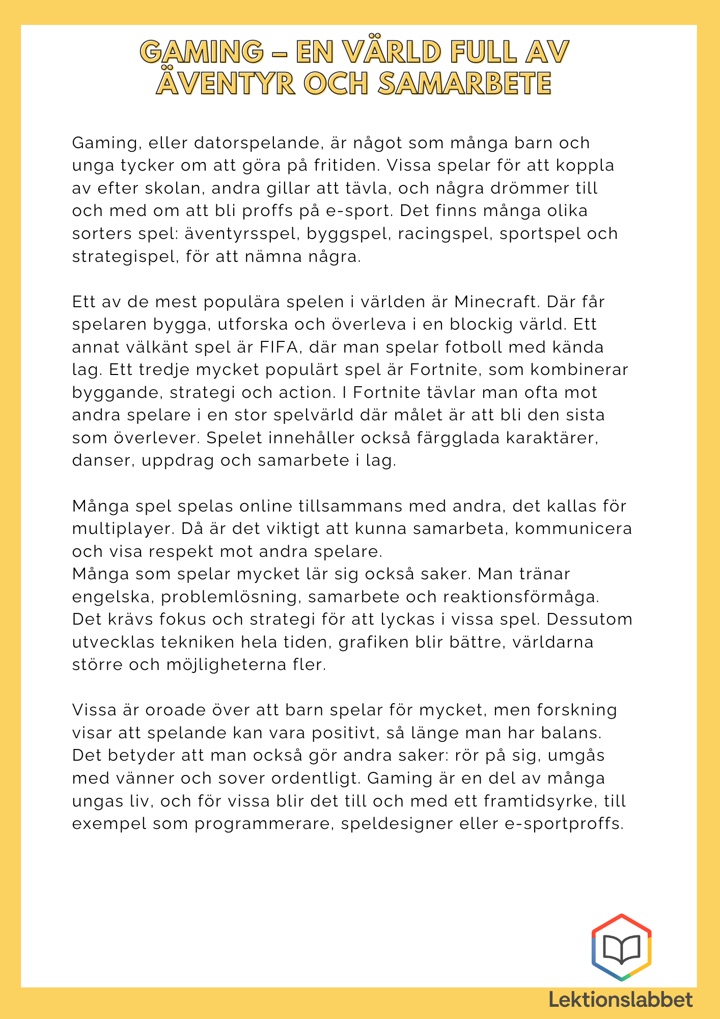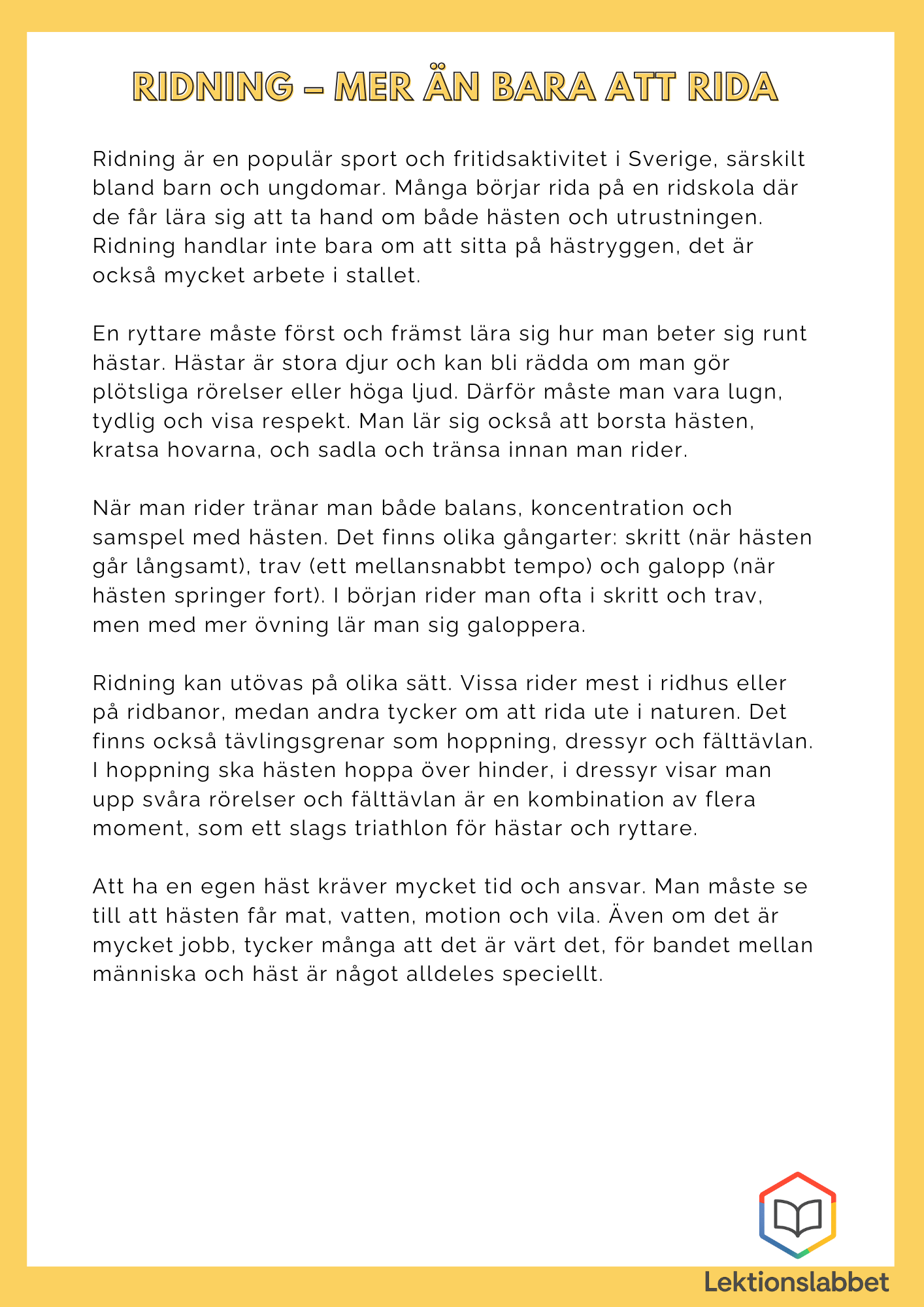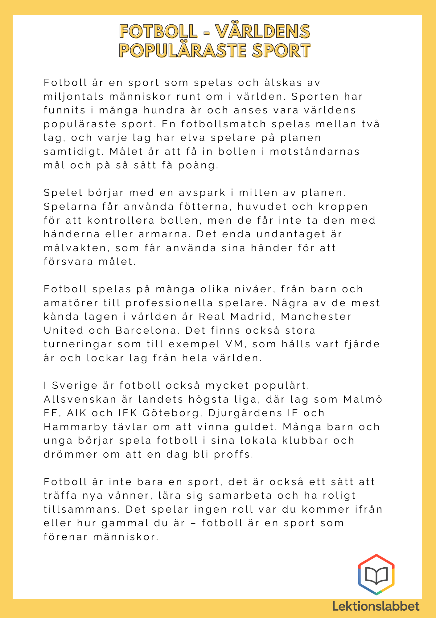 Läs och svara på frågor (i ett skrivhäfte) om fotboll. Passar bäst åk 4.