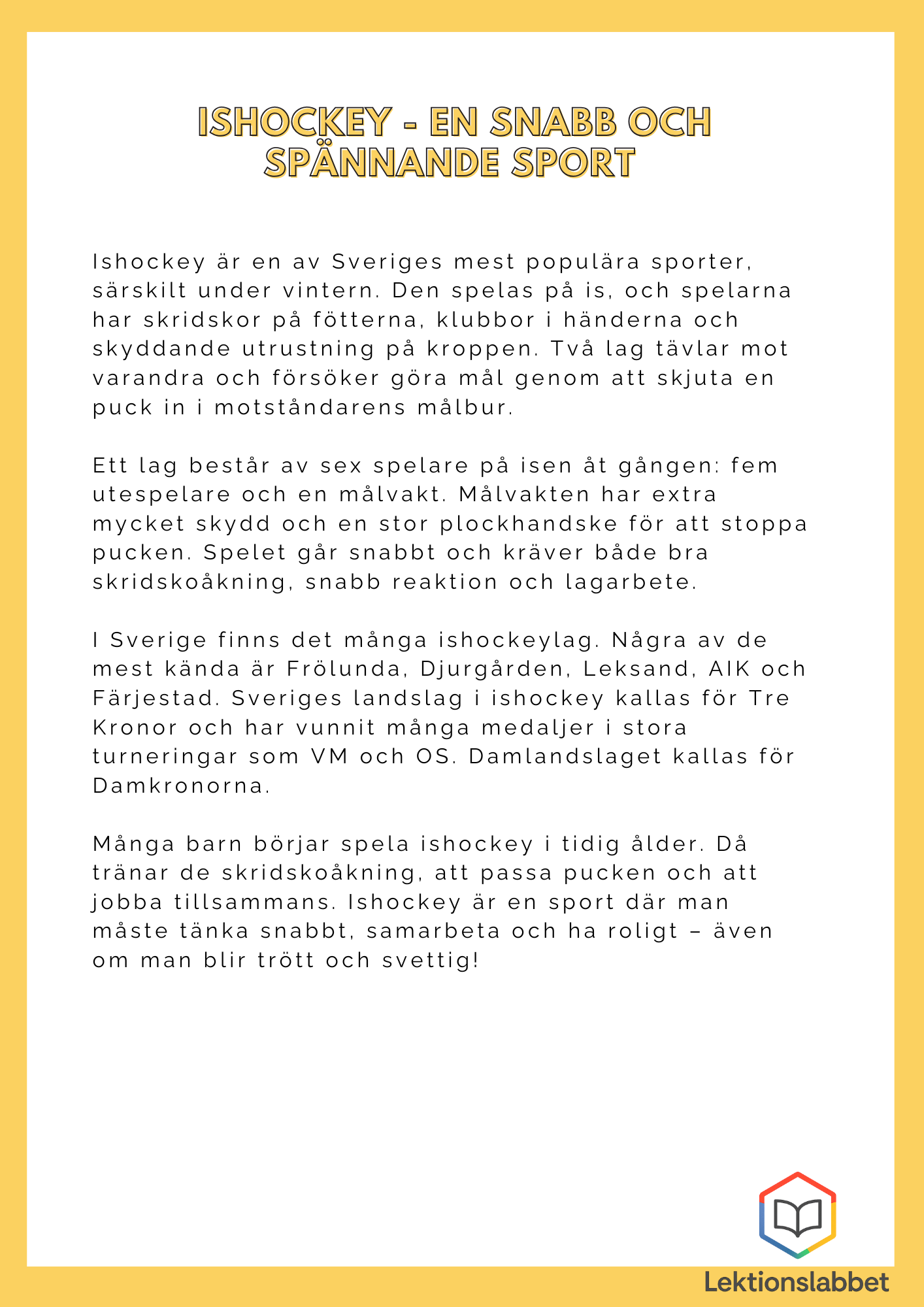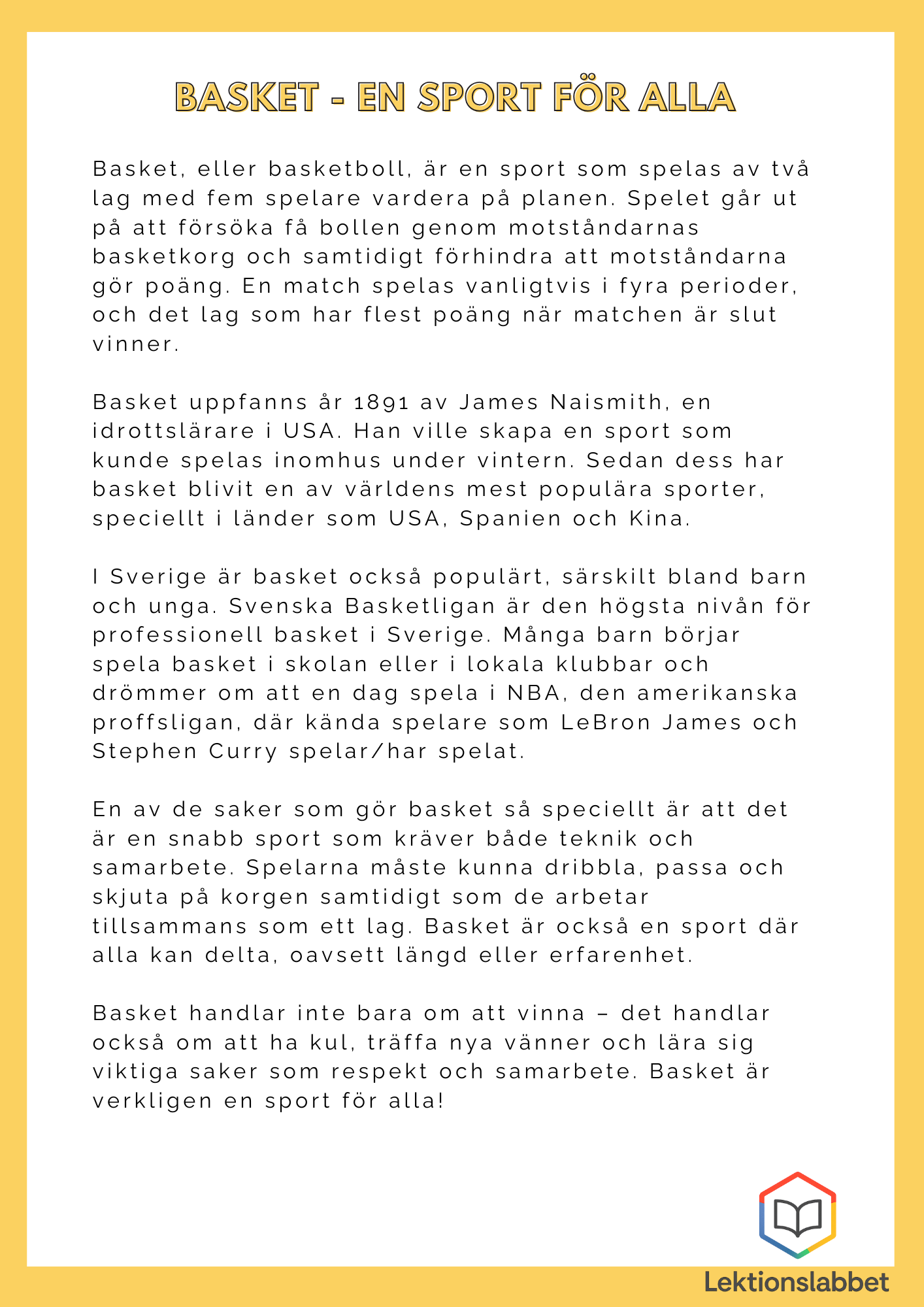 Läs och svara på frågor (i ett skrivhäfte) om basket. Passar bäst åk 4.
