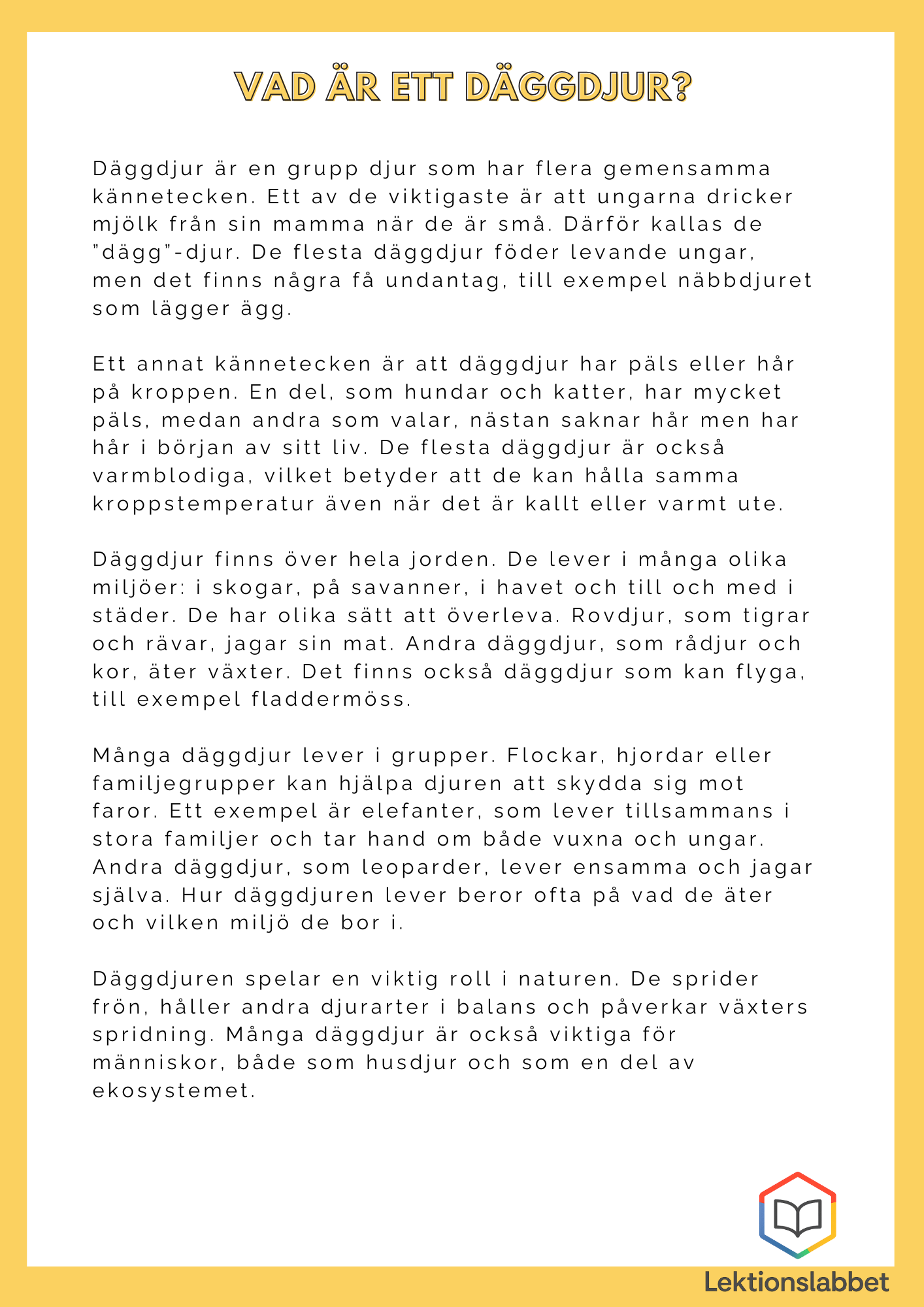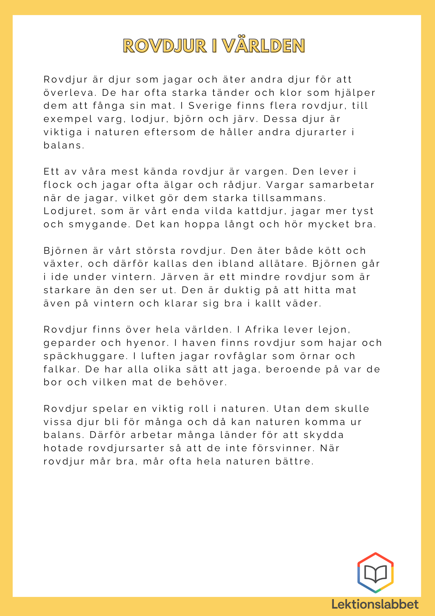 Läs och svara på frågor (i ett skrivhäfte) om rovdjur. Passar bäst åk 4.